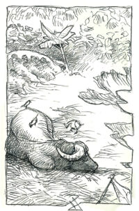 /* Pencil doodle on A6 sketchbook – Porte-mine sur carnet A6 */