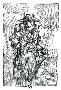 Il a couteaux, chaussettes, sac à dos, jumelles, chapeaux, kit de premiers secours, tente, tente de secours, couverture, eau, rhum, casse-croûte, lunettes de soleil, jeu de cartes, parapluie, torches, briquet… et bien sur une énorme confiance en soi.