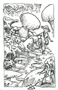 We could have use spiked shoes, but we don’t want to harm the mushrooms./* Pencil doodle on A6 sketchbook – Porte-mine sur carnet A6 */